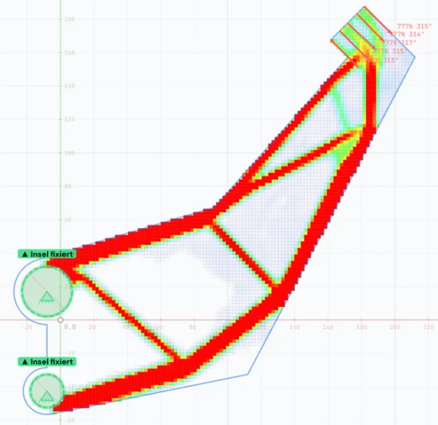 Hinweis: TopoFEA 2D ist nicht für tragende Strukturen oder sicherheitsrelevante Bauteile geeignet. Die Ergebnisse dienen als Inspiration und Grundlage für weitere Analysen.